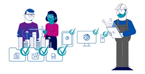 Käytä tehtäviä, tiedostoja ja malleja millä tahansa laitteella, mikä pitää tiimit tuottavina toimistossa tai työmaalla.