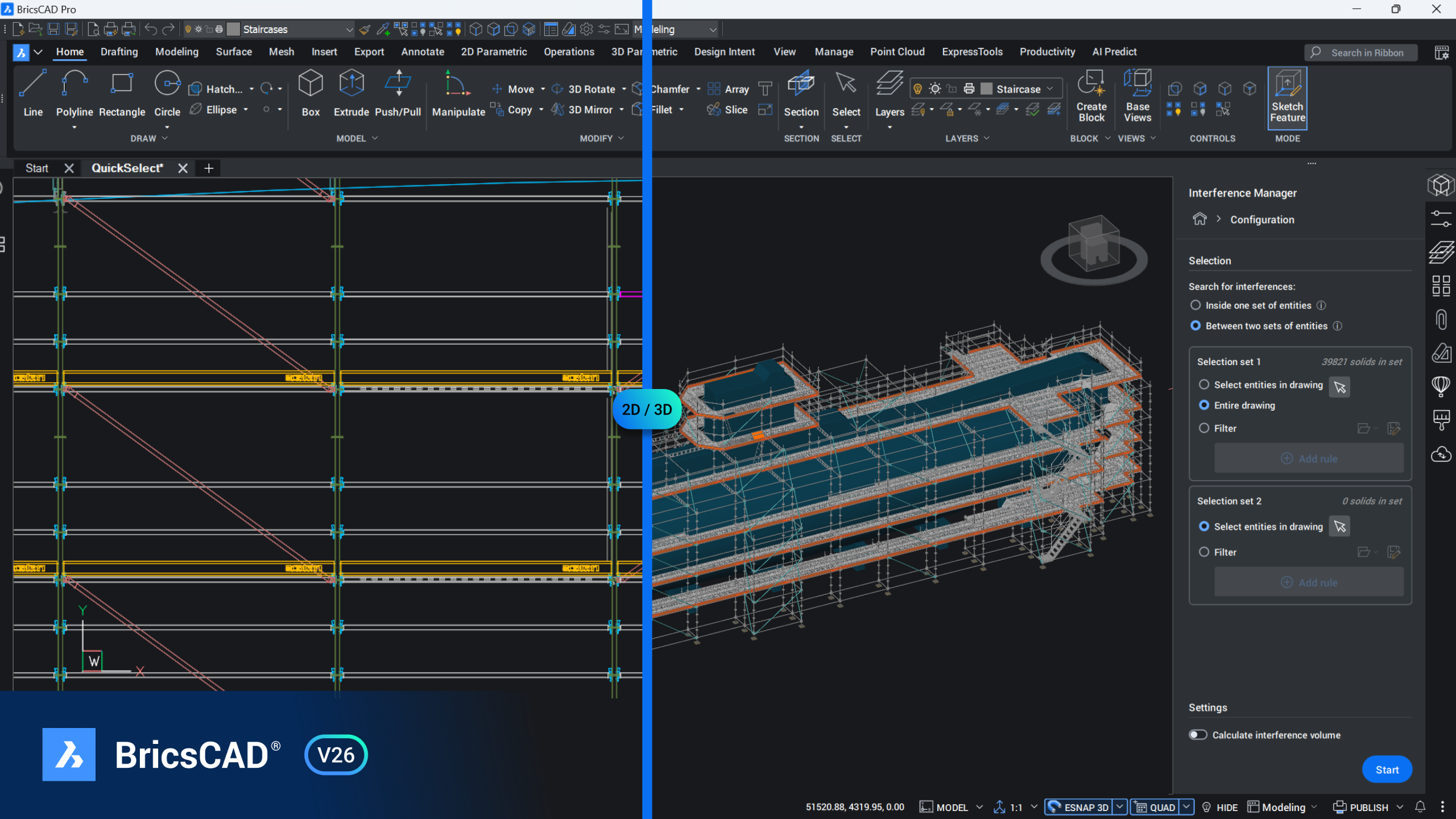 BricsCAD BIM on rakennustiedon mallinnusjärjestelmä, joka tarjoaa CAD-ohjelmiston ominaisuudet yhdistettynä BIM-työnkulkuun. Tämä mahdollistaa 3D-rakennusmallinnuksen ja BIM-prosessit samassa tuttavassa BricsCAD-ympäristössä ilman uuden järjestelmän opettelun aiheuttamaa häiriötä. Voit siirtyä 2D-piirtotyökaluista 3D-työnkulkuun omassa tahdissasi.